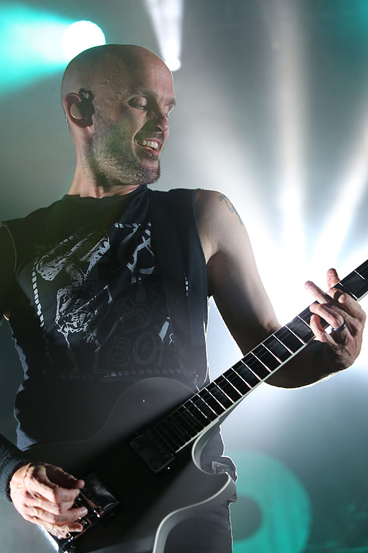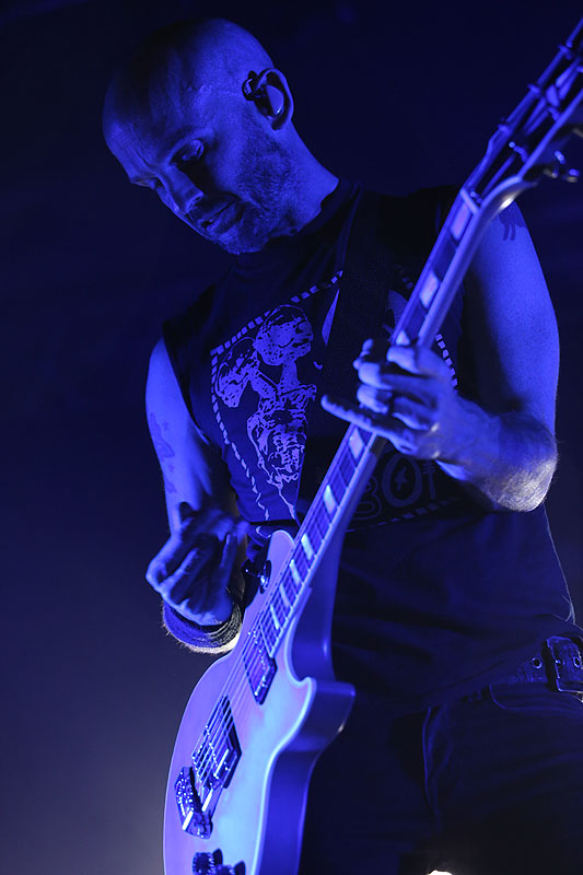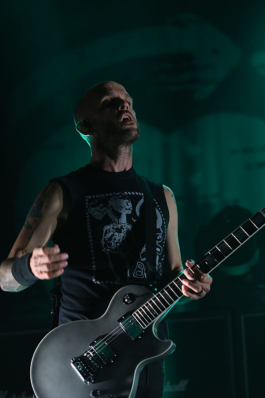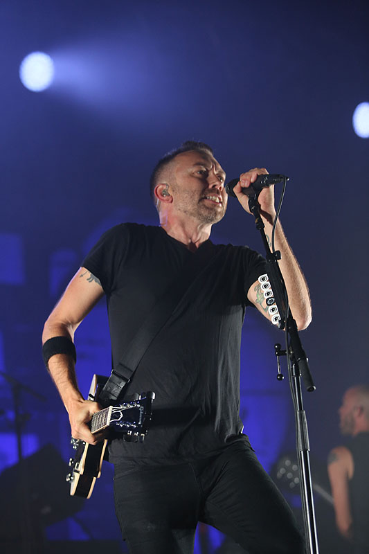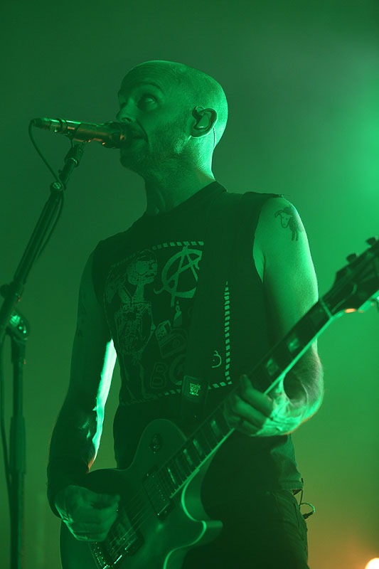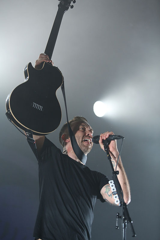Po pekle při skladbě Savior nastala tma a ticho, aby se záhy na scéně objevil Tim jen s akustickou kytarou a zejména skladbou Hero Of War ukázal, že Rise Against dokáží složit i silný protestsong. Celý večer pak zakončili očekávanou vypalovačkou Prayer Of The Refugee.
