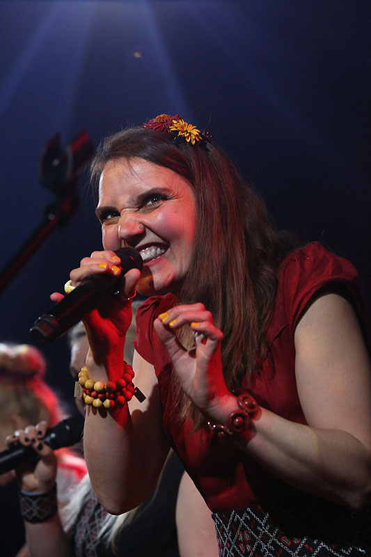 Do těchto a řady dalších podob se čtvrtečního večera v Lucerna Music Baru převtělovalo prostřednictvím svých písní trio zpěvaček u nás již téměř zdomácnělého souboru Värttinä. Finské vokalistky Mari Kaasinen, Susan Aho a nová členka Karollina Kantelinen přednesly několik ukázek ze svého posledního studiového alba Viena (což je oblast ve východní Karélii, kde skupina čerpala inspiraci i materiál pro desku), ale své vystoupení často prokládaly písněmi z předchozích alb, jichž mají na svém kontě (nepočítaje tuto novinku) rovný tucet. Värttina se tentokrát představila v zeštíhlené, komornější sestavě s rovněž pouhými třemi doprovodnými muzikanty (housle, strunné nástroje, buben), řada starších písní tak zazněla v pozměněných aranžích, jež však o to více daly vyniknout jedinečnému souzvuku všech tří hlasů. Několik skladeb či alespoň jejich částí pak dokonce zaznělo v a cappella provedení. Dámy (tentokrát v šatech evokujících lidové kroje) si jako vždy svým umem, šarmem i bezprostředností zcela podmanily publikum, které bouřlivě aplaudovalo každou píseň, samozřejmě včetně těch nejočekávanějších jako jsou Tumala, Emoton, Äijö, Aitara či Käppee. A nezakončit celé své vystoupení písničkou Seelinnikoi, to by se snad Värttina ani neodvážila…