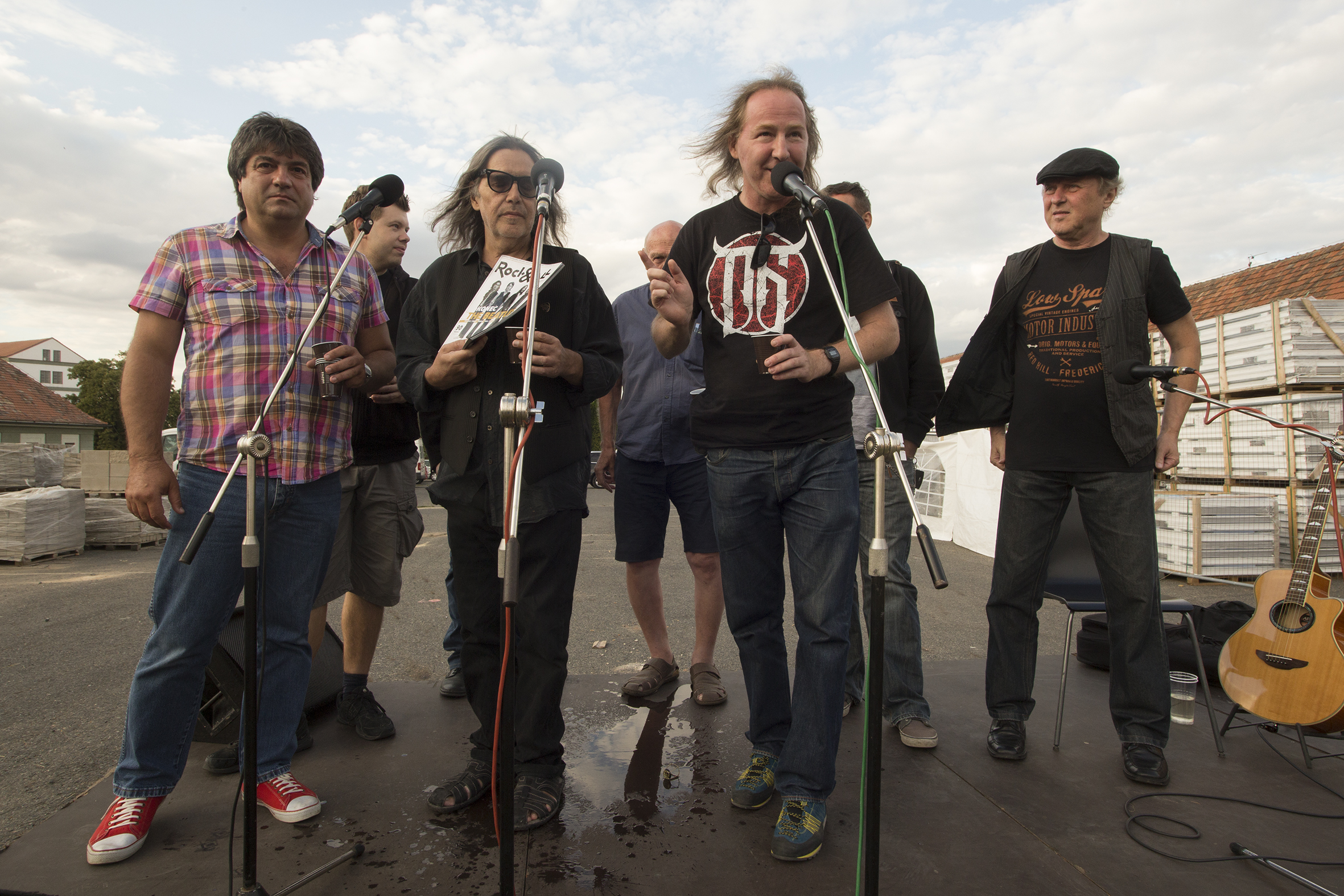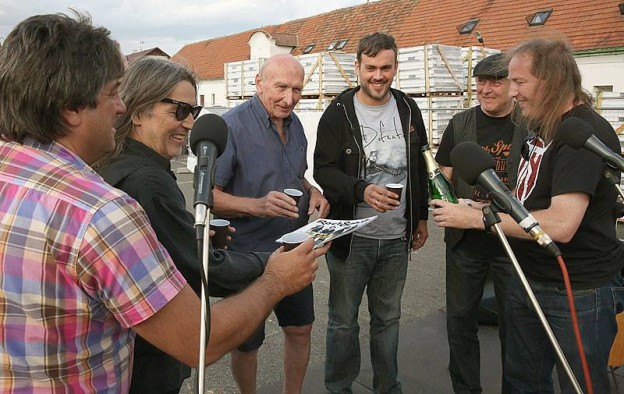 - Jediná souhrnná fotka není z dílny Magdaleny Lindaurové. Ale zachytila skoro všechny cinkající, takže zleva Ivan Ivanov, Vojtěch Lindaur, Jiří Černý, J. J. Šimon, Luboš Pospíšil, Petr Korál…. Michale?