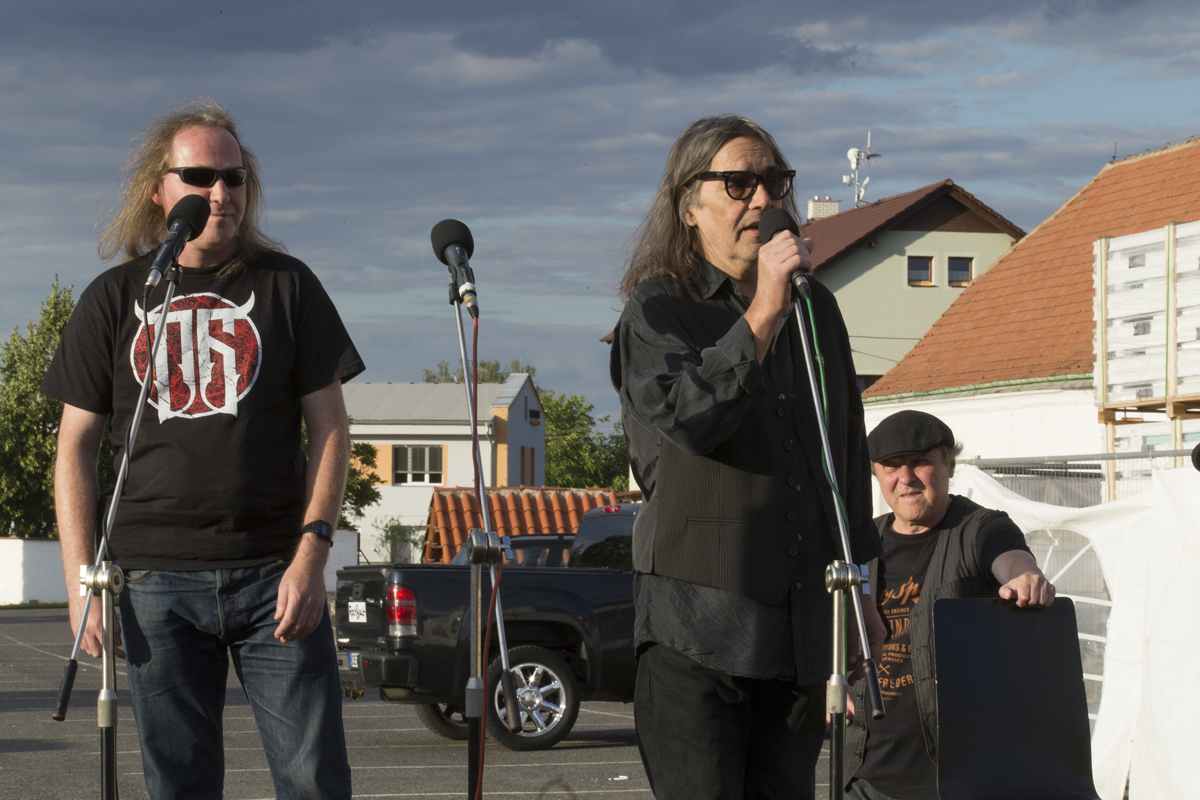 - Jiří Černý, Ivan Ivanov a J. J. Šimon čekají na pódiový nástup.
